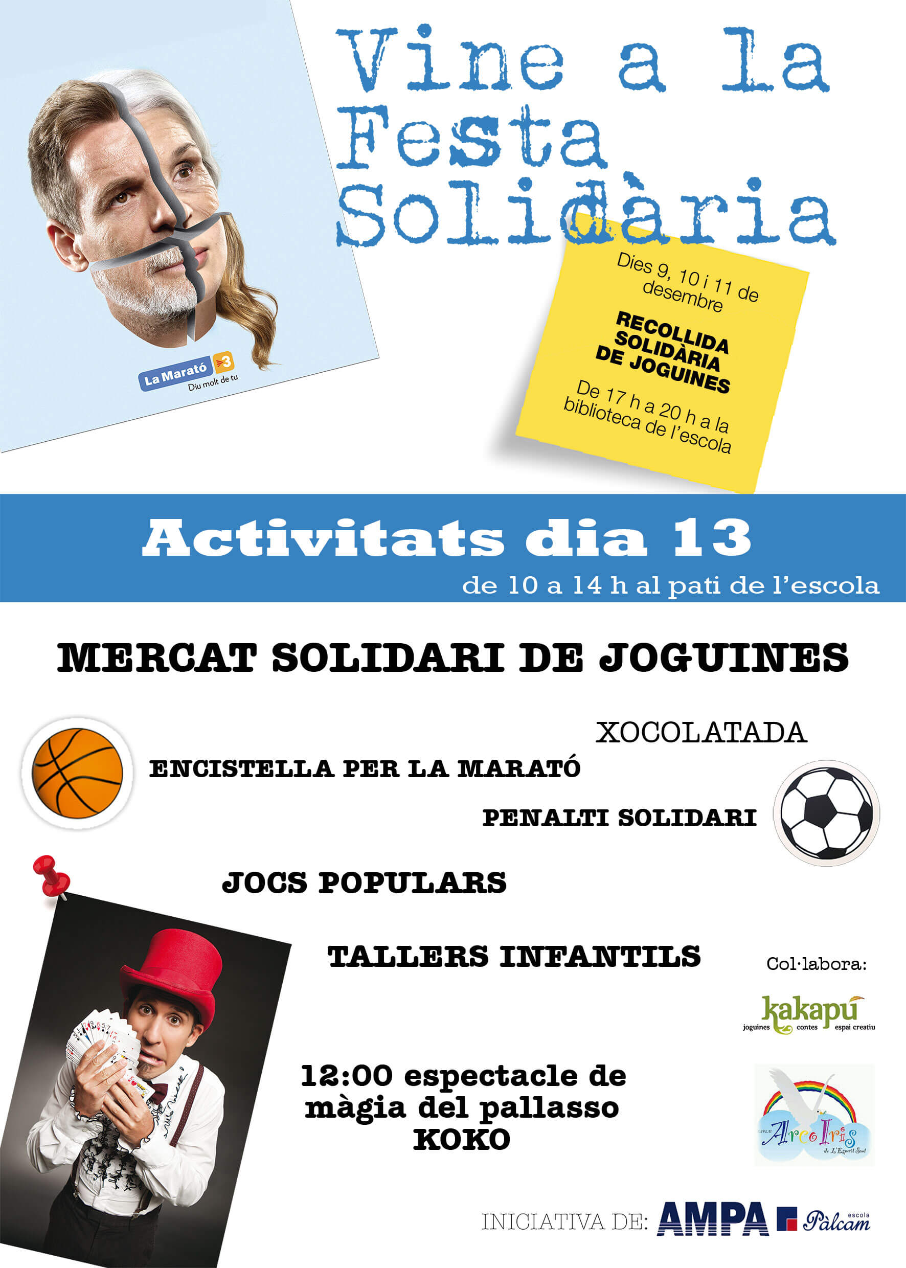 L’Ampa de l’escola Pàlcam organitza un any més, la festa solidària amb motiu de la Marató de TV3, aquest any per lluitar contra la diabetes i la obesitat. T’hi esperem!